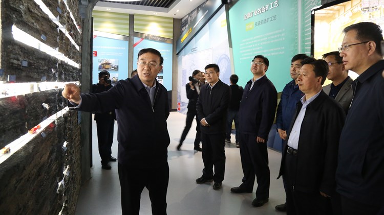 李沛興先后深入尾礦庫、停機坪、1190主平硐口、科技中心、員工公寓等地調研。在尾礦庫,李沛興詳細詢問了尾礦庫庫容、服務年限、防洪標準、安全保障和尾礦庫在線監測系統運行情況等內容,并與陪同人員就尾礦庫的安全管理工作做了交流。在停機坪,李沛興認真聽取了建設內容、資源儲量和建設成果的詳細匯報后饒有興趣地說:“從高處鳥瞰,礦區就像一個聚寶盆,生產廠房、員工公寓、體育場館等建筑物布局科學合理,其外觀造型和色彩與周邊環境自然融合,這樣的礦區是非常少見的”。在采礦中控室,李沛興通過監控視頻詳細查看了井下采礦場景和各運輸中段生產情況,在科技中心5D影視廳,李沛興認真觀看了《金徽礦業郭家溝鉛鋅礦采礦篇》,并指出:“完善的井下六大系統對礦山企業來說非常重要,金徽股份在這方面做得比較到位,應該組織省內其他企業來多看、多學習”。隨后,在員工公寓調研過程中,陪同人員重點就企業文化建設和公司關心關愛員工的一系列舉措做了全面匯報,期間,李沛興還向一名員工了解了公司提供的免費就餐、免費住宿和五險一金等員工享受的福利待遇情況。